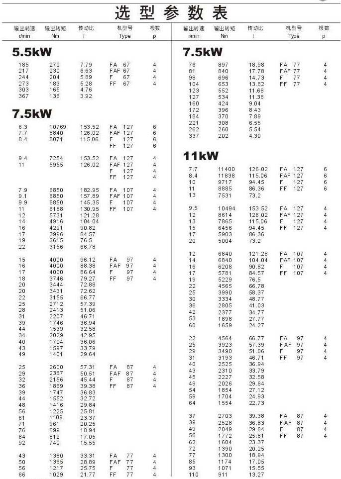 選型參數表5.5kW(續),7.5kW,11kW