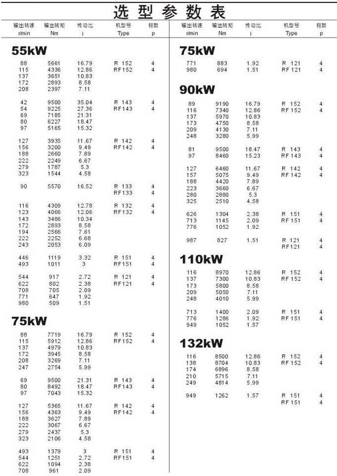 選型參數(shù)表55kW,75kW,90kW,110kW,132kW
