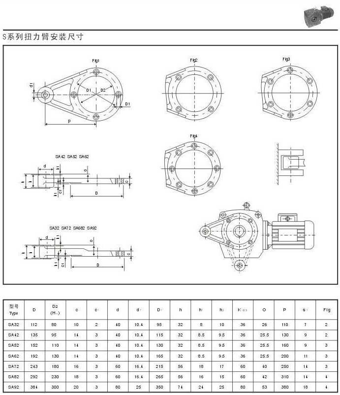 S系列扭力臂安裝尺寸